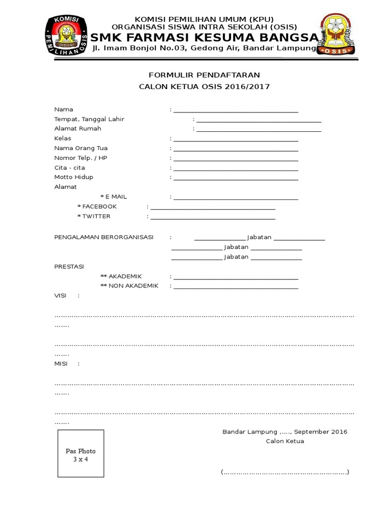48+ Contoh Formulir Pendaftaran Calon Ketua Bem