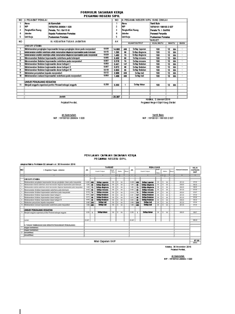 16 penilaian sasaran kerja pegawai negeri sipil jangka waktu penilaian 5 januari s/d 31 desember 2012 no i.
