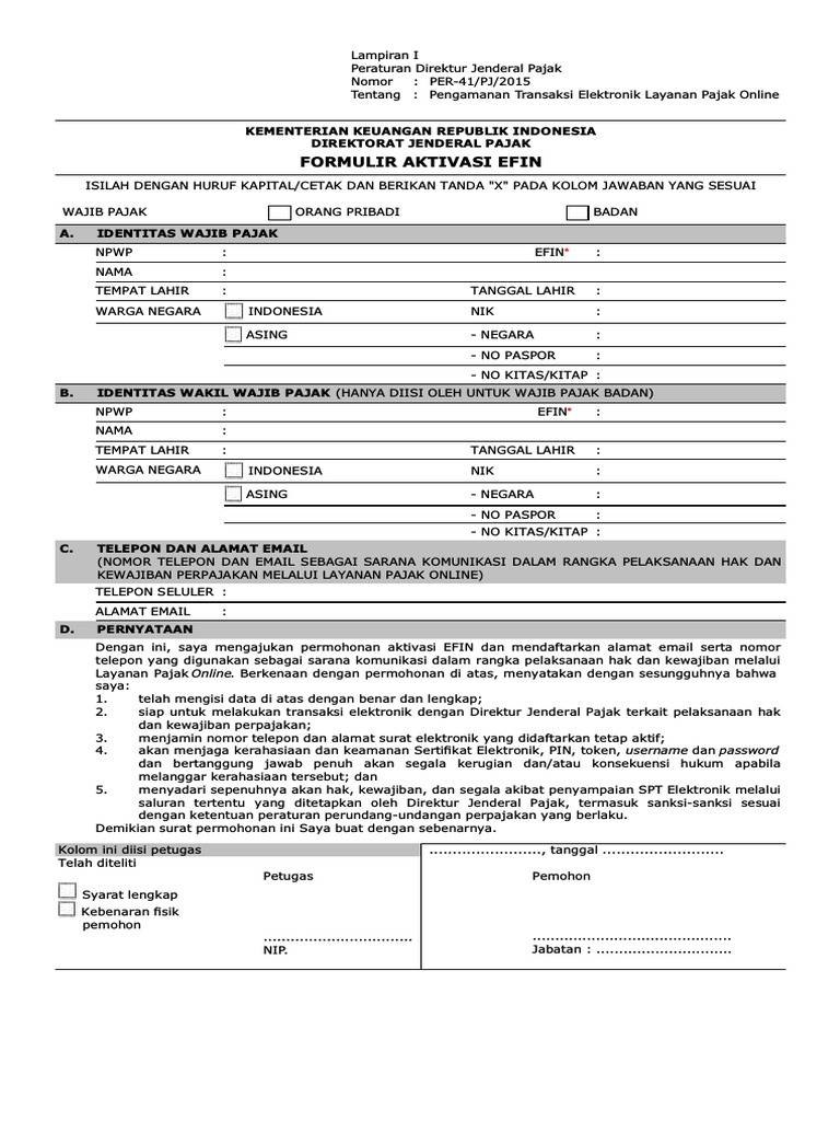 19+ Formulir Efin Pajak. Petunjuk pengisian formulir permohonan aktivasi efin. Aktivasi efin pajak badan anda di kpp.