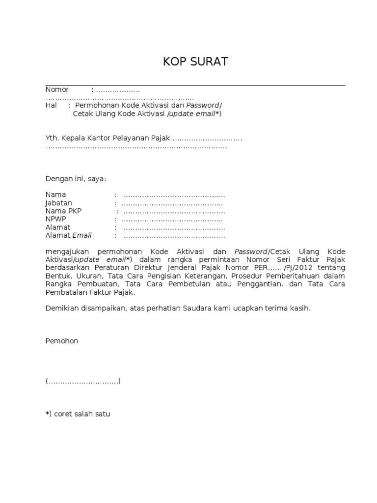 Dengan ini saya nama jabatan nama pkp npw p alamat mengajukan aktivasi akun.