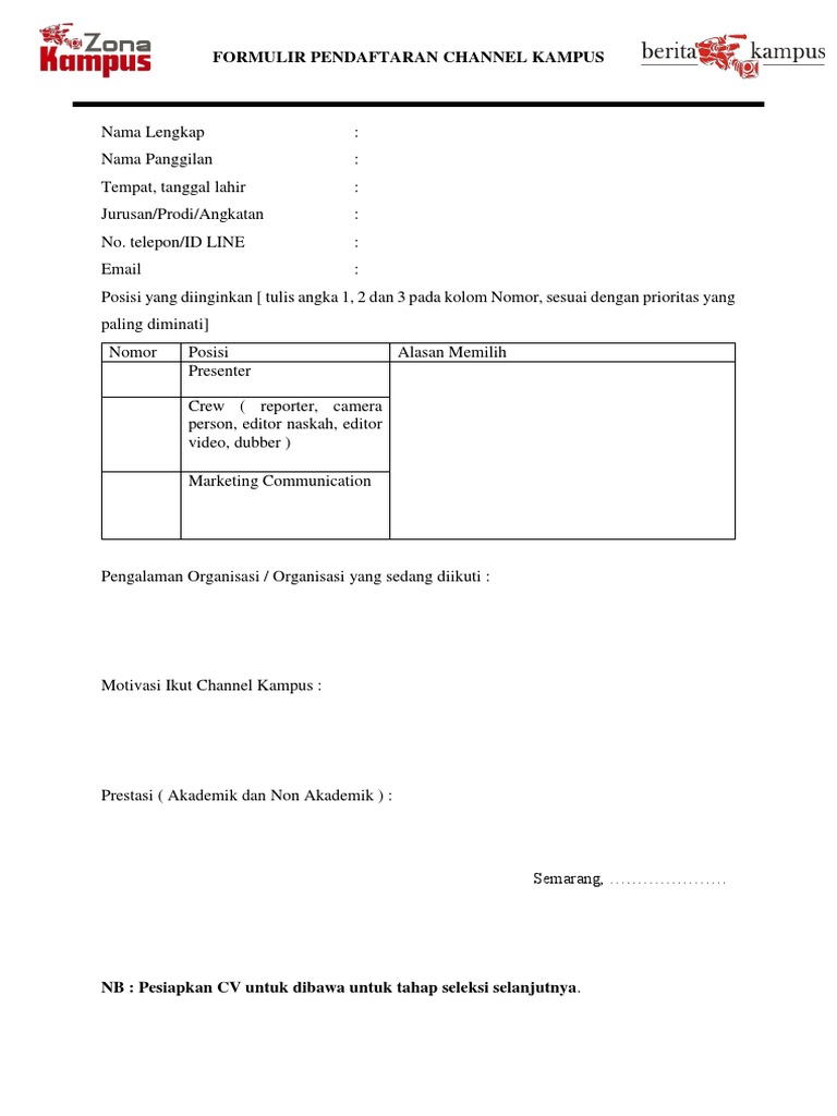 45+ Contoh Formulir Pendaftaran Organisasi Kampus