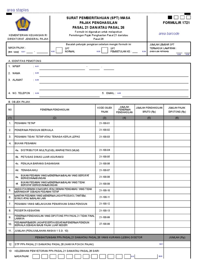 16+ Formulir 1721 A1 Excel Lengkap