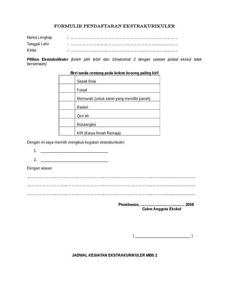 38+ Tuliskan Contoh Formulir Pendaftaran Kegiatan Ekstrakurikuler