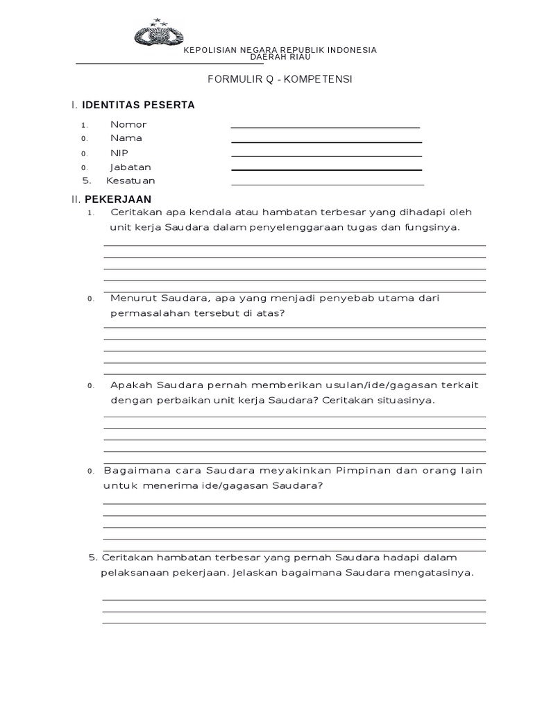 22+ Formulir Q Kompetensi. Ini adalah video tutorial cara pengisian formulir permohonan diri, formulir asesmen mandiri, dan formulir critical incident, dalam rangka mengikuti uji kompetensi inpassing jabatan fungsional. Formulir laporan peserta pelatihan 18. Bagaimana penilaian bapak/ibu terhadap kompetensi alumni. Bagaimana penilaian bapak/ibu terhadap kompetensi alumni. Menurut spencer and spencer, (1993 : Tanggapan survei anda dikumpulkan dalam formulir dengan rapi dan secara otomatis, disertai info tanggapan waktu nyata dan grafik.
