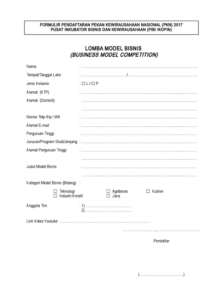 45+ Formulir Pendaftaran Lomba Diisi Ketika
